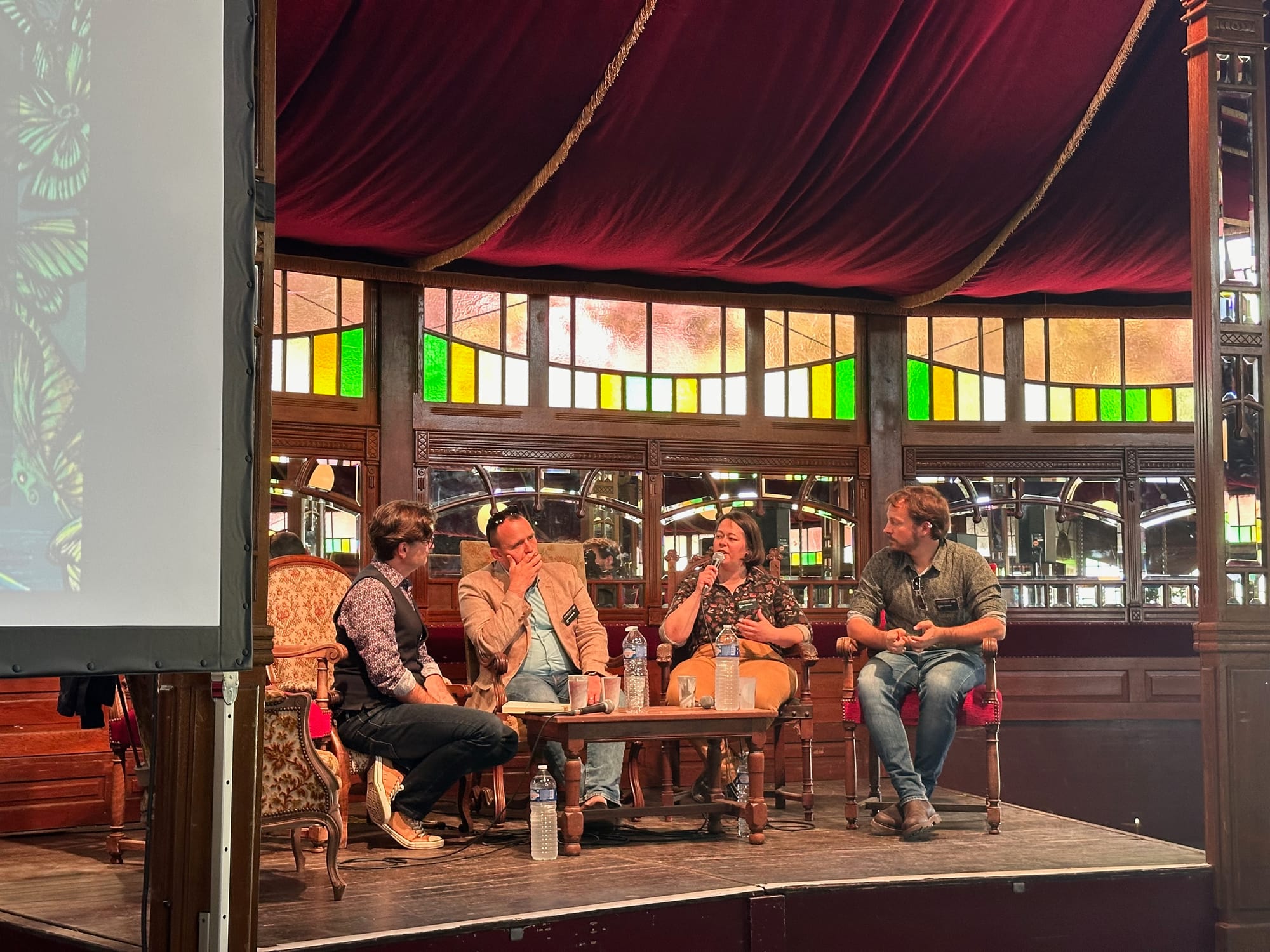 Les Imaginales ce sont aussi des rencontres avec les autrices et les auteurs. Beaucoup de ces rencontres se passent en dédicace dans la fameuse « Bulle du livre », ou en marge du salon, dans le parc dans lequel se tient le festival ou dans les bistrots du centre-ville. J’ai retrouvé des visages connus, des piliers de longue date comme Silène Edgar, Lionel Davoust, Sylvie Poulain, Jean-Laurent Del Socorro, Claire Duvivier, Guillaume Chamanadjian, Aurélie Wellenstein ou Adrien Tomas (J’aimerais en citer tellement plus !), découvert de nouvelles plumes, comme Chris Vuklisevic ou Arnaud Dollen et échangé avec les stars qui avait fait le déplacement comme Christelle Dabos, Alain Damasio, Pierre Bordage, ou Rebecca Yarros. Du côté de la présence internationale, j’ai pu croiser Blake Crouch, en tournée européenne coïncidant avec la sortie de la série Dark Matter et John Gwynne.