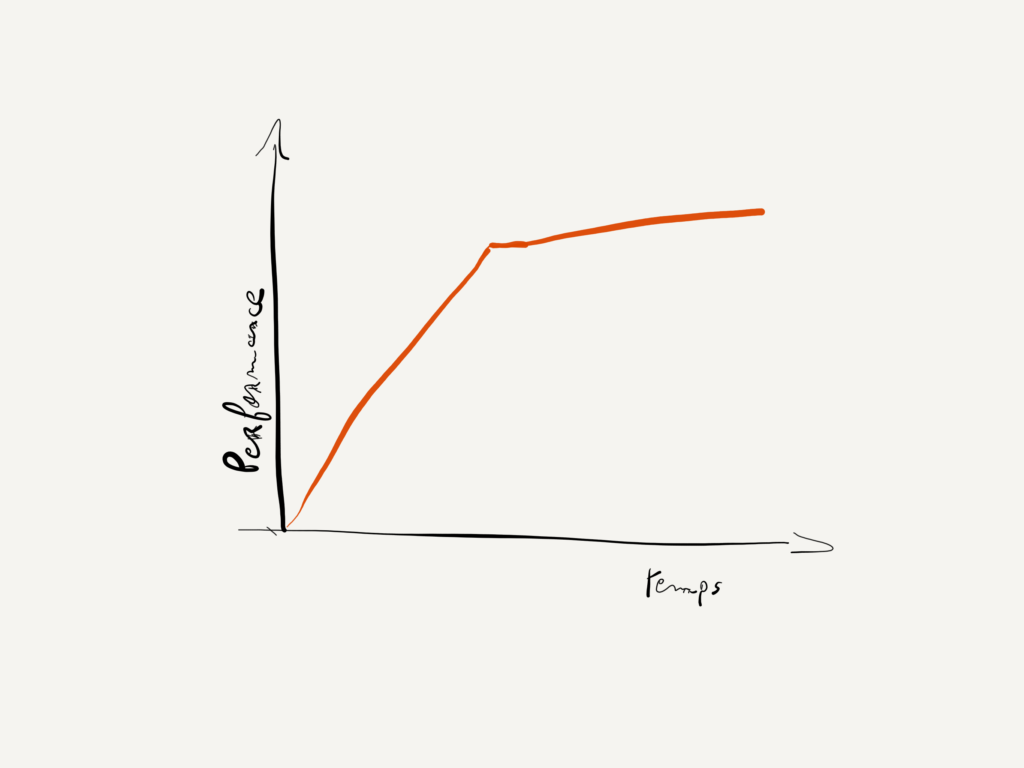 Nous atteignons au fil du temps une valeur maximale, même si ce n'est pas tout à fait un plateau, car il est toujours possible de nous améliorer à la marge.